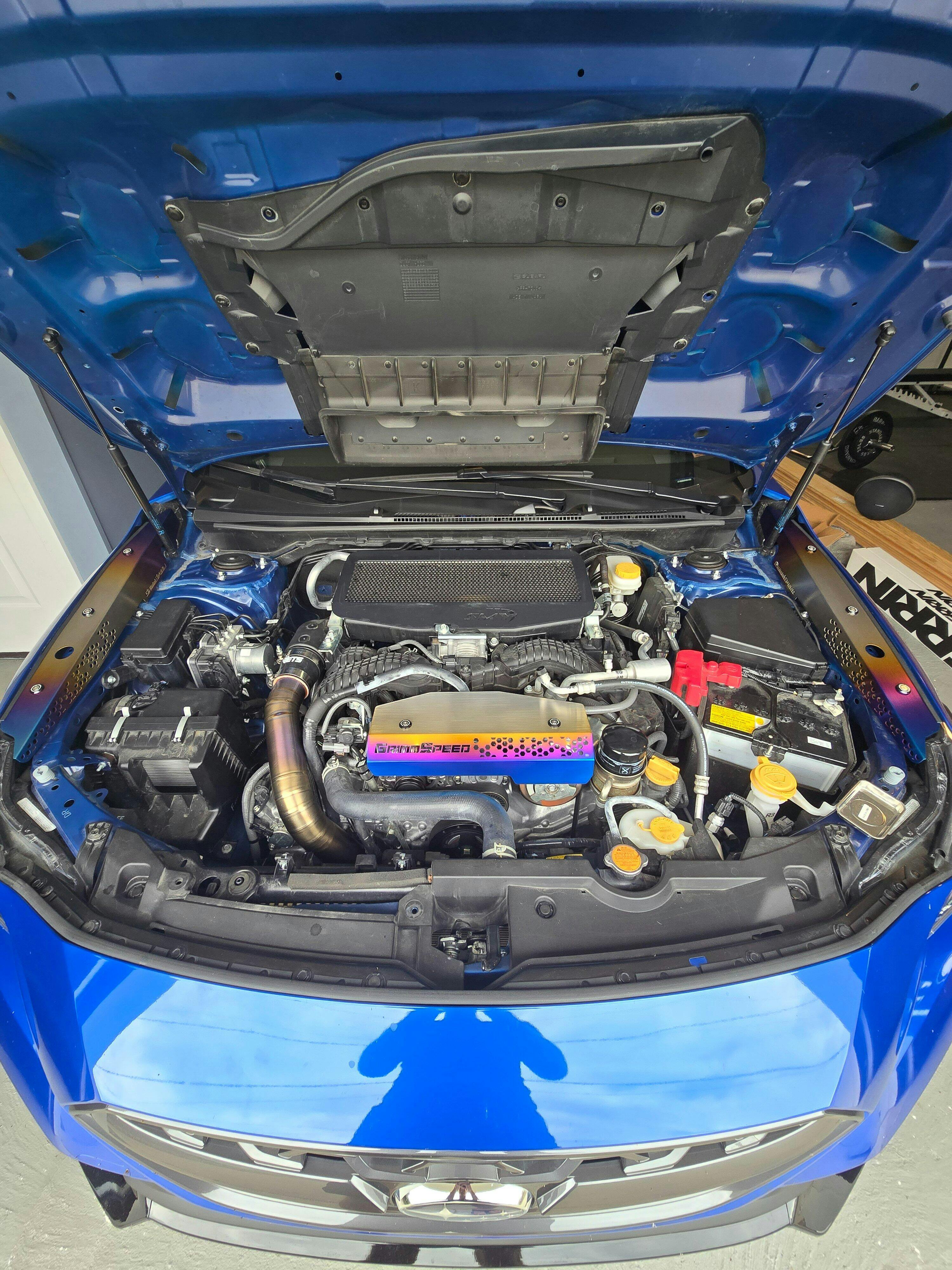 Crafted from laser-cut Grade 2 titanium, these covers feature a stunning burnt ombre finish that adds a unique, high-end flair to your engine bay. Each shroud includes custom GrimmSpeed dress-up washers and titanium bolts for a polished, professional look.