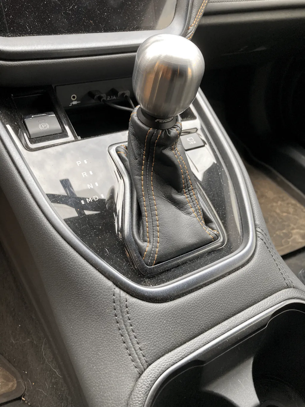 Thank you for your 5 Star Review and added pic! The Perrin Weighted Barrell SS Shift Knob is a great way to give an updated look to the interior of your CVT Outback! Removing the trigger button it allows you to simply push down on the knob to shift!